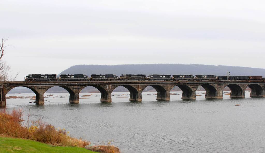 A shot from last week of the NS 4000 leading an intermodal train west across Rockville Bridge. As seen from The Bridgeview B&B. |