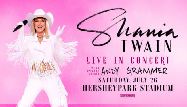 ![]() | Shania Twain at Hershey Park Stadium ~ 7/26/25 Saturday, July 26th, 2025, Country pop icon Shania Twain makes a stop at Hersheypark Stadium on her final series of summer concerts. This tour rounds off an extraordinary two years of sold-out performances and unforgettable shows. Don’t miss this opportunity to see the one and only Shania Twain this summer! Another opportunity not to be missed in Central PA, is lodging at The Bridgeview Bed & Breakfast! With cozy and relaxing rooms all with private baths, A/C, Wifi, fresh breakfasts and stunning views, your stay at the Bridgeview B&B will surely be a hit. Check what other guests have to say at Trip Advisor and call 717-957-2438 today to book your unforgettable stay! |